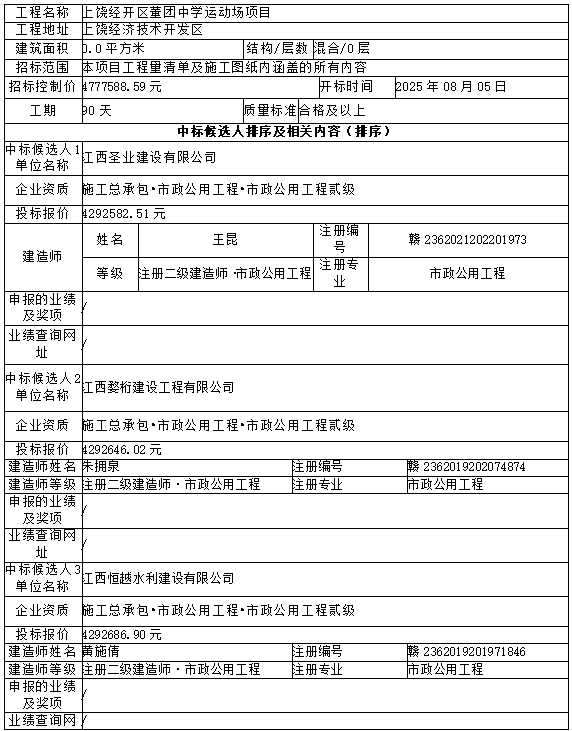 一、項(xiàng)目概況本招標(biāo)項(xiàng)目上饒經(jīng)開區(qū)新科大道西側(cè)工業(yè)項(xiàng)目土地平整工程已由饒開經(jīng)發(fā)[2025]51號文件批準(zhǔn)建設(shè),招標(biāo)人為上饒筆架山投資發(fā)展有限公司,建設(shè)資金已落實(shí),項(xiàng)目已具備招標(biāo)條件,現(xiàn)進(jìn)行公開搖選,選定一家施工單位,現(xiàn)將有關(guān)事項(xiàng)公告如下:二、項(xiàng)目基本情況:1、項(xiàng)目名稱:上饒經(jīng)開區(qū)新科大道西側(cè)工業(yè)項(xiàng)目土地平整工程... [更多]